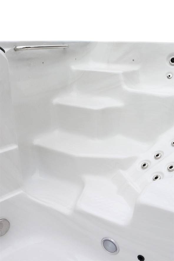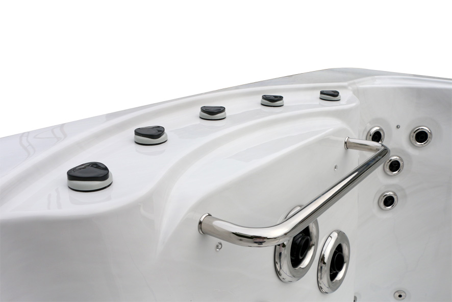 Прозрачный поручень из пищевого пластика обеспечивает дополнительную безопасность, а прочное дно из fiberglass гарантирует долговечность конструкции.