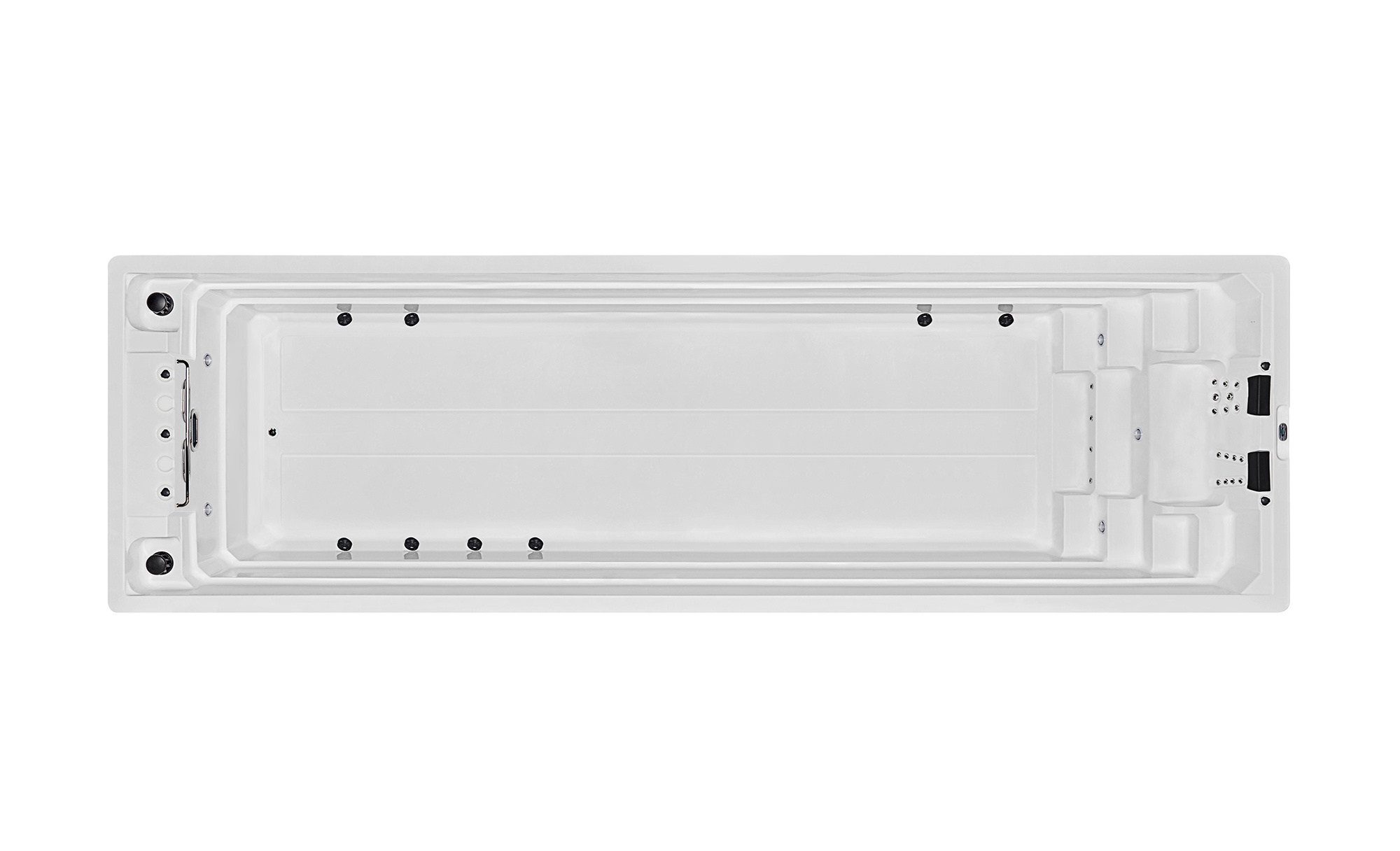 - Размеры: 9950 × 3000 × 1430 мм (длина × ширина × высота) - просторная чаша, позволяющая комфортно плавать и отдыхать